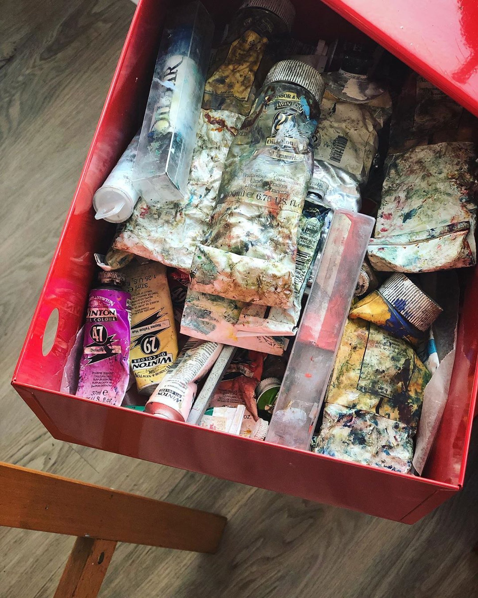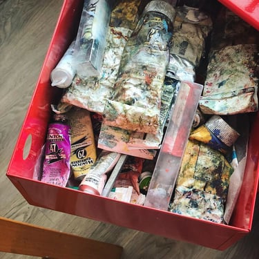 Clearly I love to paint and draw. I use brushes, palette knives, both hands, my finger tips, whatever used piece of paper towel I have left lying around from cleaning my tools, and I like to do it with Peter Gabriel's The Last Temptation of Christ album bellowing in the background (and maybe a little Methods of Mayhem, too).