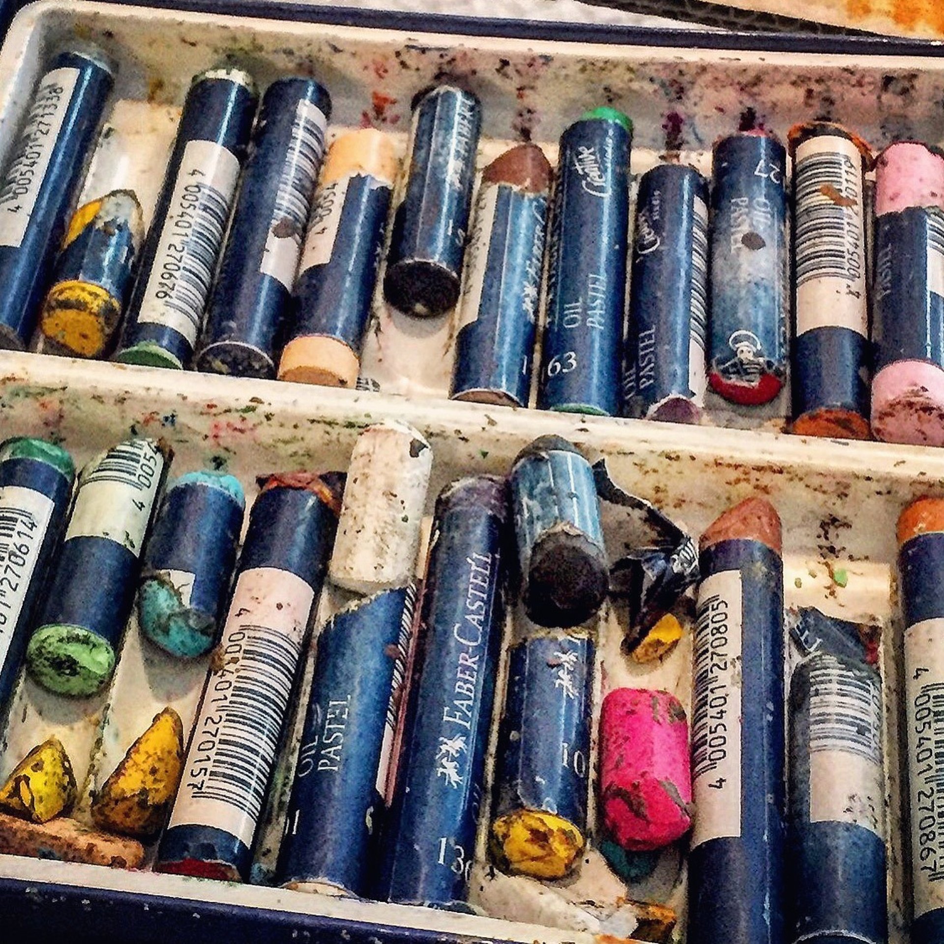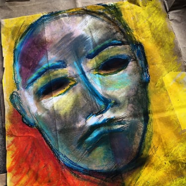 I know something is up with me when I grab my charcoal, craypas and kneaded eraser. Like the time when I was broke, I cut open and laid flat paper shopping bags for "canvases". I just went at it, blending and pushing my finger tips to the extreme. At the end of my work session my hands were a colorful shredded mess but my mind was clear.