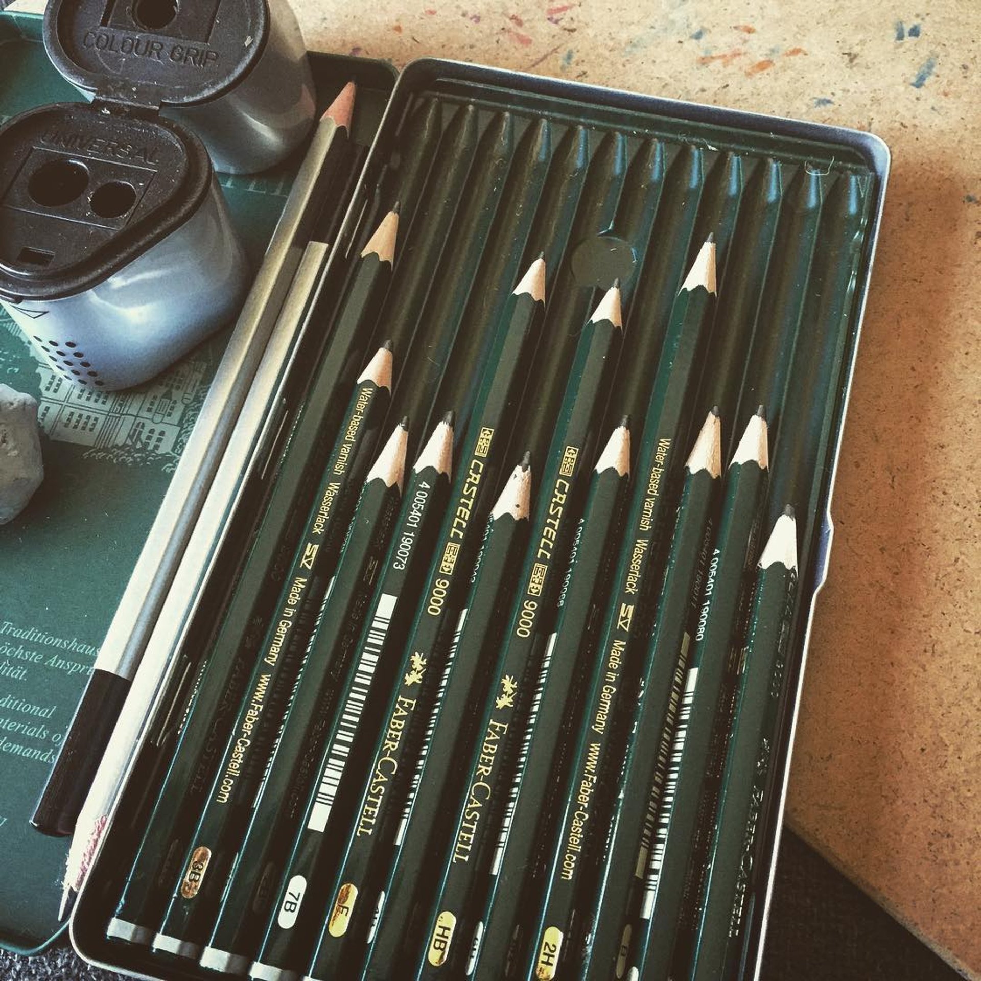 Pencils are where my signature swirls originated. (Can you recall the scent of a freshly sharpened pencil in elementary school?) Pencil work can be revealing—it provides insight into the artist. It can also get you into trouble at school.